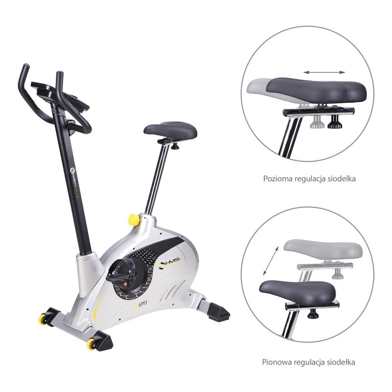 Konštrukcia modelu M6993 je vyrobená zo solidnej ocele, vďaka ktorej je nosnosť trenažéra až 120 kilogramov. Riadidlá s elektródami pre snímanie srdcového tepu je možné naklápať. Sedlo je polohovateľné vertikálne do 9 polôh a v horizontálnej rovine je umiestnené na koľajnici pre plynulý posun. Vzdialenosť stredu sedla od pedálov tak ide nastaviť v rozsahu 64 - 90 centimetrov. Predný stabilizátor je vybavený kolieskami pre jednoduché presúvanie. Zadný stabilizátor zase ponúka výškovo nastaviteľné podložky pre vyrovnanie trenažéra do roviny.
