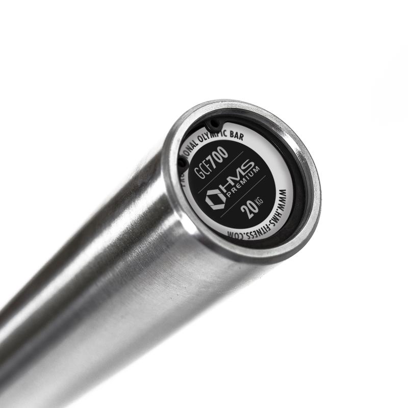 Olympijská os GCF700 HMS PREMIUM bola vyrobená zo špeciálnej chrómovanej ocele, ktorá prešla procesom kalenia. Produkt HMS sa vyznačuje pevnosťou v kombinácii s dokonalou pružnosťou. Súčasťou súpravy sú dva plastové uzávery ZG1000. Pevné a pohodlné uchopenie hriadeľa je zabezpečené vroubkovaním na povrchu. Maximálne zaťaženie je 700 kg. Priemer úchopovej časti je 28 mm a zabezpečuje vysokú odolnosť a pohodlie počas tréningu. Použitý proces chrómovania hriadeľa je zárukou zachovania jeho vzhľadu po dlhú dobu jeho používania a tiež je najlepšou ochranou proti korózii. Olympijská hriadeľ GCF700 HMS PREMIUM má 8 ihličkových ložísk (4 na každej strane), ktoré umožňujú hladké a plynulé otáčanie rukávov na hriadeli. Jej konštrukcia znižuje napätie na koncoch valčekov, čo má za následok vyššiu životnosť ložísk. Napriek svojmu malému prierezu majú ihličkové ložiská vysokú tuhosť a nosnosť. Dva plastové uzávery nachádzajúce sa v balení zaručujú stabilné rozloženie záťaže na hriadeli počas tréningu. Uzávery majú vo vnútornej časti gumové elementy brániace tomu, aby sa závažia povolili.