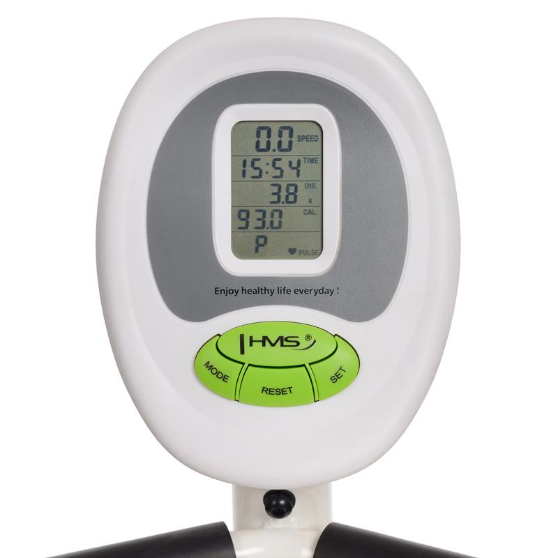 Magnetický horizontální rotoped neboli recumbent, je nejnovější přírůstkem značky HMS. Kvalitní provedení v kombinaci s robustní konstrukcí a tvarovaným sedátkem, zaručují i náročnějšímu uživateli skvělý kondiční trénink. Dalšími prvky vhodnými k vyzdvihnutí jsou určitě 9,0 kg zátěžové kolo, 120kg maximálního zatížení a 5 řádkový LCD displej. To vše za jednu z nejlepších cen na trhu.