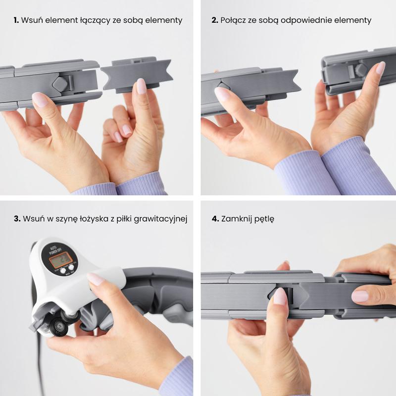 Délka obruče se nastaví podle obvodu pasu tak, aby byla dostatečně volná, ale zároveň aby nepadala přes boky. Po nastavení délky se obruč uzamkne pomocí spojovacího dílu, který je osazen páčkou pro ovládání zámku. Závaží se následně "vrhne" směrem, do kterého budeme kroutit boky a začneme trénink. Obruč HHW06 je z vnitřní strany opatřena masážními výstupky s pružinami, které tlumí vibrace od pohybující se kotvy a zároveň příjemně masírují oblast pasu. Intensitu tréninku ovlivňuje délka provázku a rychlost, jakou kroutíme boky.