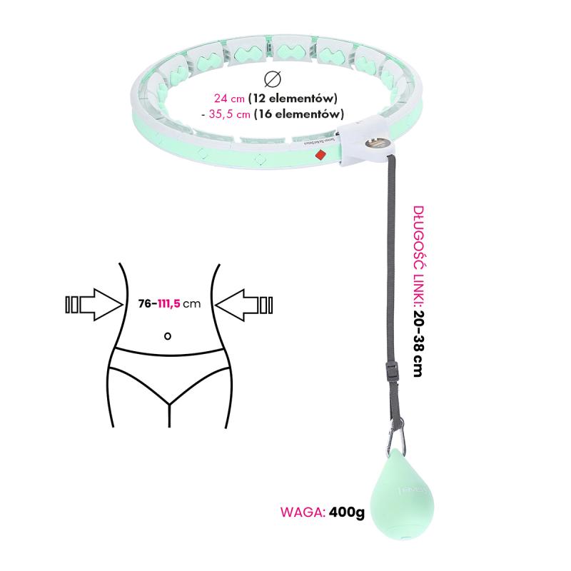 Dĺžka obruče sa nastaví podľa obvodu pásu tak, aby bola dostatočne voľná, ale zároveň aby nespadala cez boky. Po nastavení dĺžky sa obruč uzamkne pomocou spojovacieho dielu, ktorý je osadený páčkou pre ovládanie zámku. Závažie sa následne "vrhne" smerom, do ktorého budeme krútiť bokmi a začneme tréning. Obruč HHW06 je z vnútornej strany opatrená masážnymi výstupkami s pružinami, ktoré tlmia vibrácie od pohybujúcej sa kotvy a zároveň príjemne masírujú oblasť pásu. Intenzitu tréningu ovplyvňuje dĺžka šnúrky a rýchlosť, akou krútíme bokmi.
