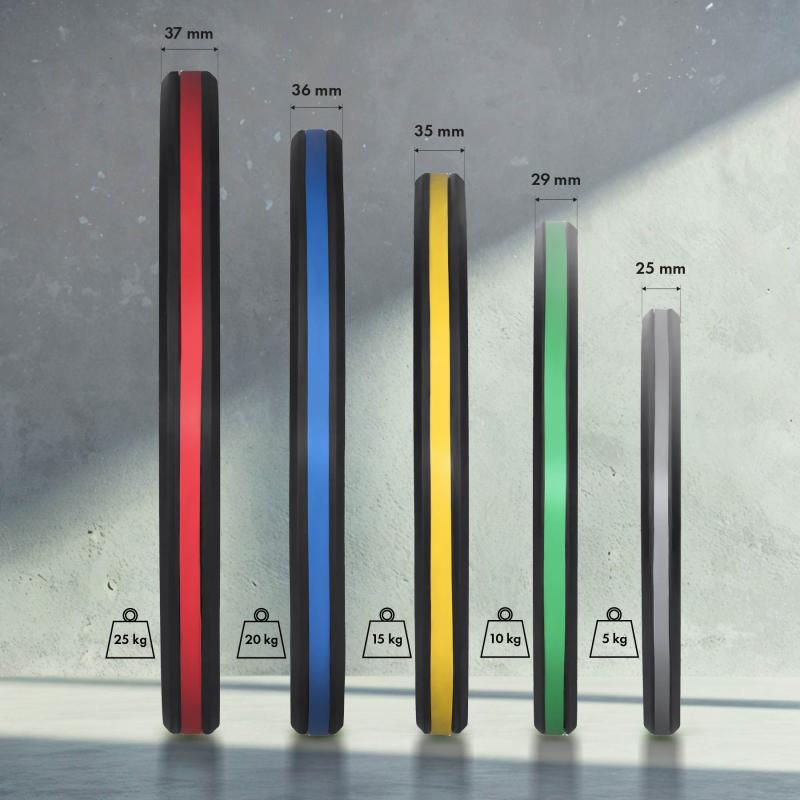 | Hmotnosť kotúča (kg) | 5 | 10 | 15 | 20 | 25 |