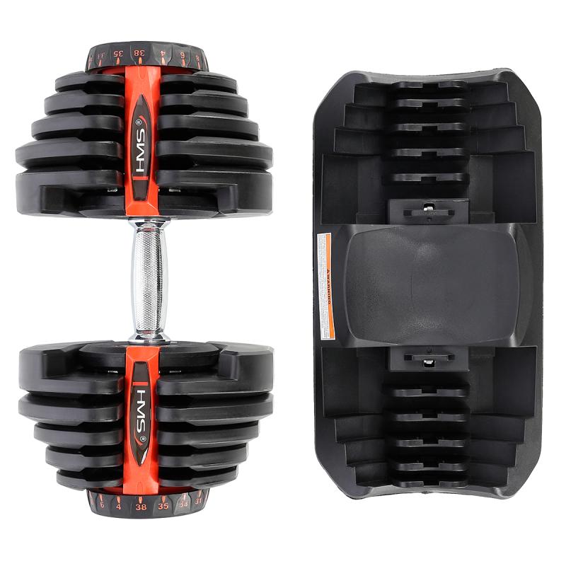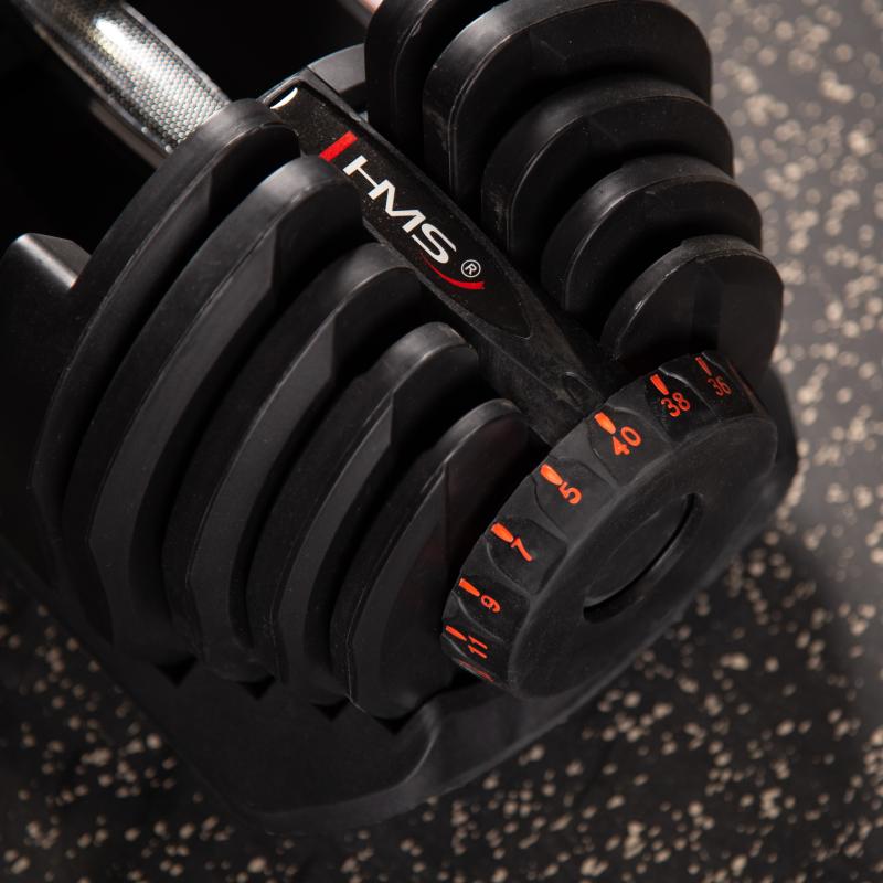 Produkt je vyroben z materiálů nejvyšší kvality. Velkou výhodou SR80 HMS je ergonomicky tvarovaná rukojeť činky, potažená protiskluzovým materiálem. Regulovatelné jednoruční činky značky HMS představují inovativní řešení pro milovníky silových sportů – 10 kotoučů umožňuje libovolné nastavení zátěže podle potřeb uživatele.