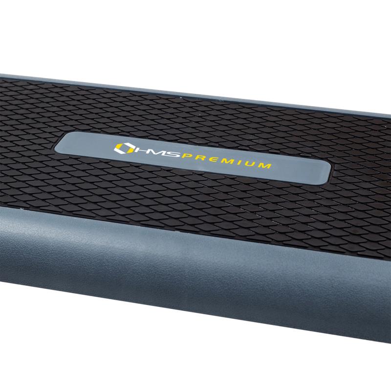 Step je vybaven protiskluzovým povrchem, který zajišťuje jistý pohyb i při dynamickém cvičení. Gumové nožičky zabraňují posunování stepu a zaručují stabilitu a bezpečnost.