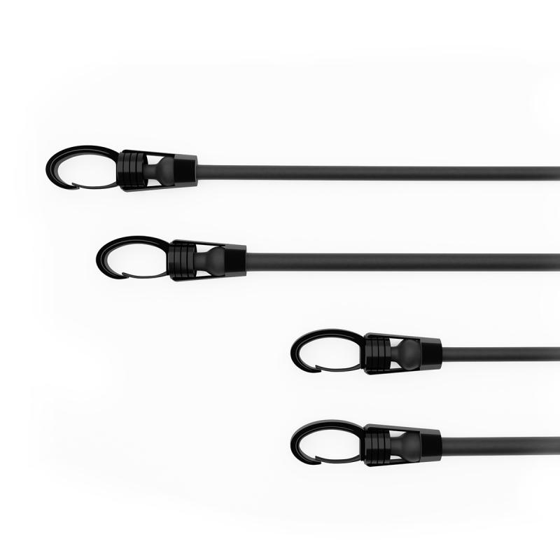 - Univerzálnost – přidávejte další gumy pro zvýšení odporu pomocí funkčních karabin, měňte úhel tréninku přesunutím úchytu úchytu za dveře a střídejte cvičené končetiny výměnou rukojetí.