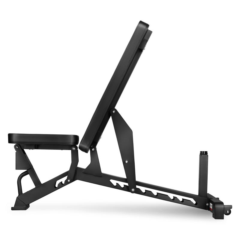 Tato nastavitelná lavice je perfektní volbou pro silový trénink s činkami a osami. Stabilní konstrukce zajišťuje bezpečnost i při práci s těžkými váhami. Široký rozsah nastavení vám umožní provádět například bench press na rovné či šikmé lavici nebo cviky na ramena ve vzpřímené poloze.