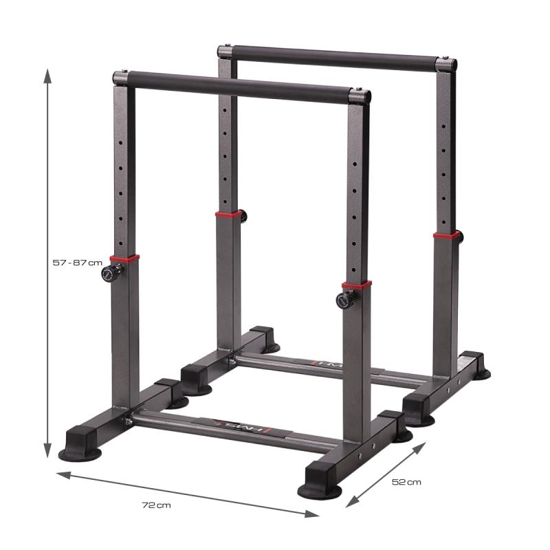 PW30 PRO umožňuje provádět nejrůznější cviky přes klasické kliky, dipy, švédské kliky až po stojky. Na podpěrách cvičíme s vlastní váhou. Bradla jsou tak vhodná jak pro profesionální cvičence, tak pro začínající juniory. HMS PW30 PRO jsou výškově nastavitelné v rozmezí 57 - 87 centimetrů a jejich možnost použití se tak ještě rozšiřuje. Výšku podpěr si tak můžete jednoduše přizpůsobit potřebám konkrétního cviku.