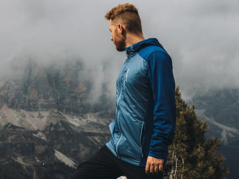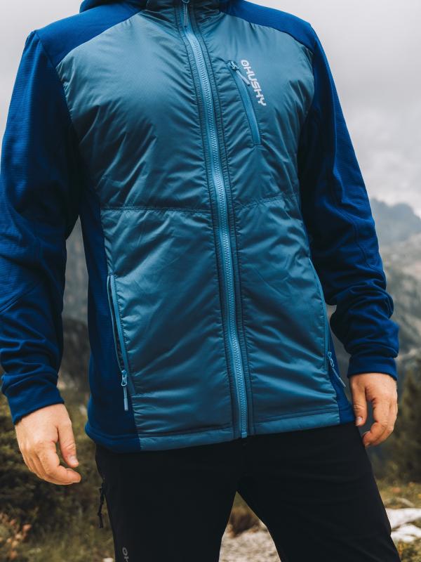 Mikina kombinuje vlastnosti klasickej mikiny a bundy - predný a zadný diel obsahujú tenkú vrstvu syntetickej výplne, ktorá zabezpečuje efektívny tepelný komfort bez zbytočného objemu. Táto hybridná konštrukcia je vhodná predovšetkým pre outdoorové aktivity, kde je dôležitá tepelná izolácia a zároveň voľnosť pohybu.