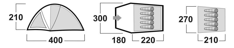 | Rozměr vnějšího stanu | 300 × 400 × 210 cm |