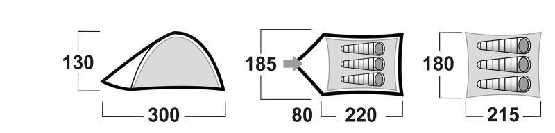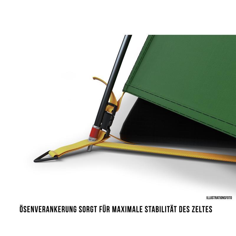 Vysoká stabilita stanu v náročných podmínkách díky lehké a pevné laminátové konstrukci s ocelovými kolíky k ukotvení.