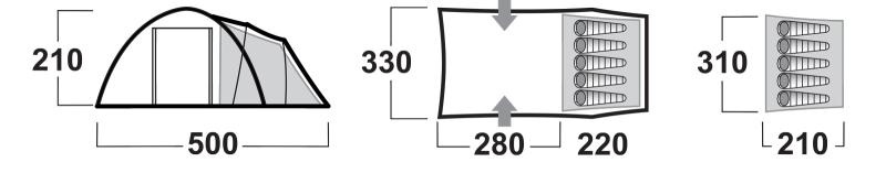 Rozměry (Š × D × V ) 330 x 500 x 210 cm