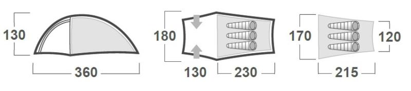 | Rozměr vnějšího stanu | 180 x 360 x 130 cm |