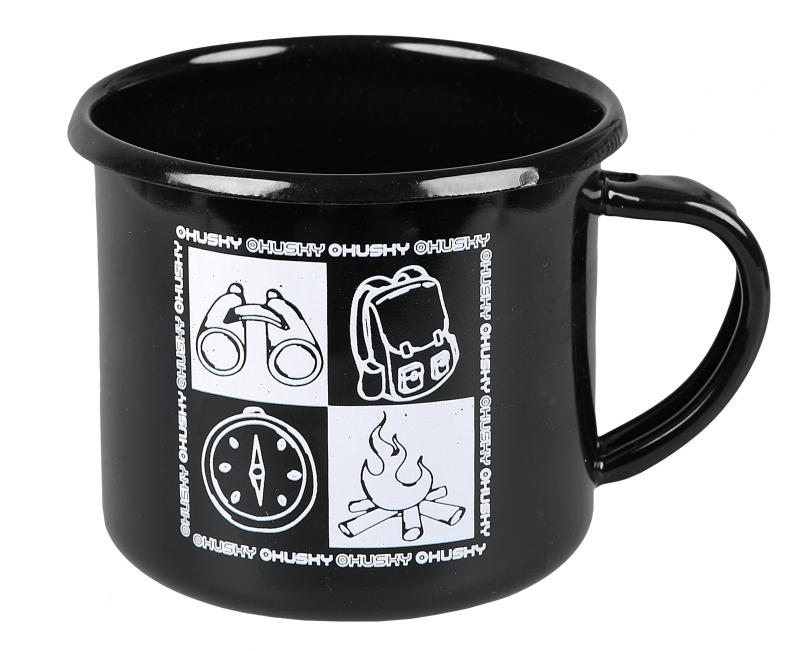 Husky camping čierny plechový hrnček