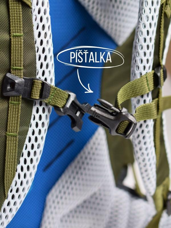 • Nastaviteľné popruhy: hrudný, bedrový, ramenné a kompresné popruhy pre pevné uchytenie a prispôsobenie batohu