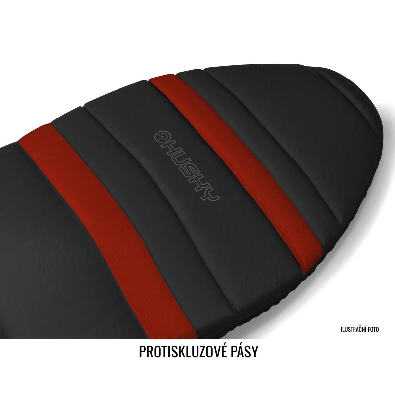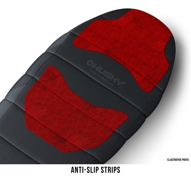 • Protišmykové pásy na zadnej strane zabraňujú posúvaniu spacáku na podložke, čím prispievajú k lepšiemu spánku.