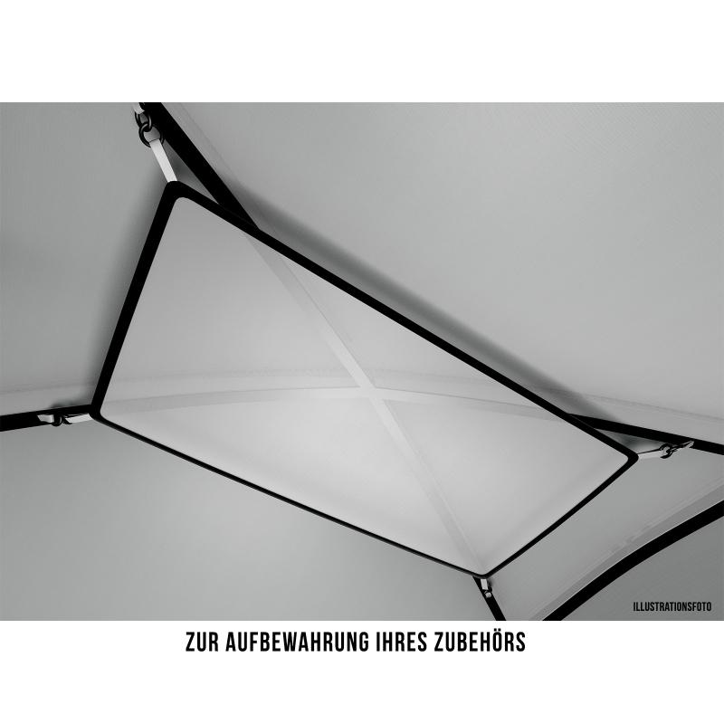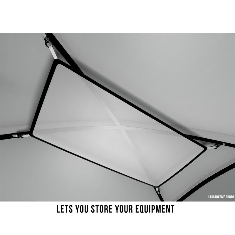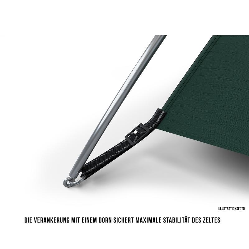 • Lehká a pevná duralová konstrukce zajišťuje stabilitu i za silného větru či deště a je doplněna o odlehčené kolíky pro pevné ukotvení.