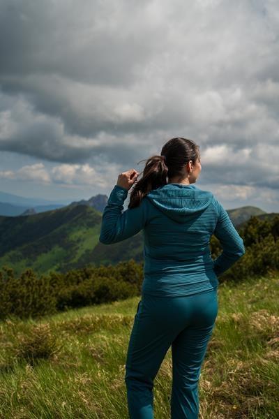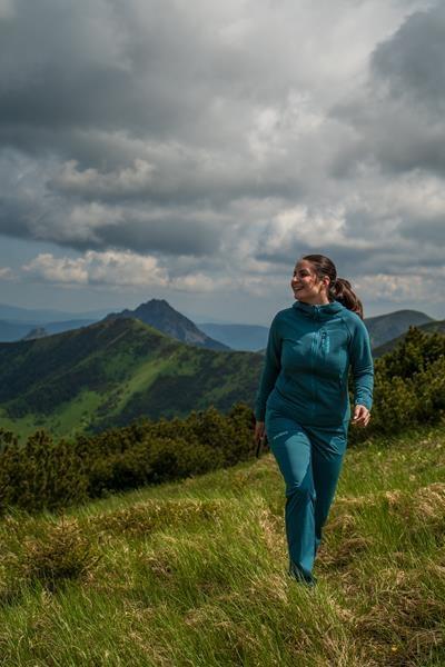 Prodyšnost materiálu činí 10 000 g/m2/24 hod, což je vhodné pro aktivní pohyb i při proměnlivém počasí.
