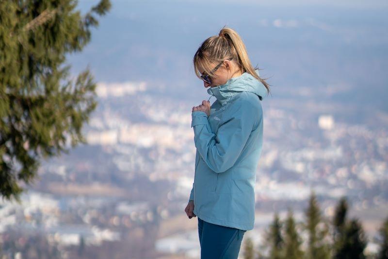Dámska hardshellová bunda s kapucňou chráni pred dažďom a vetrom vďaka vodeodolnému a priedušnému materiálu, ideálna pre outdoor aj mestské nosenie. Zobrazit celý popis