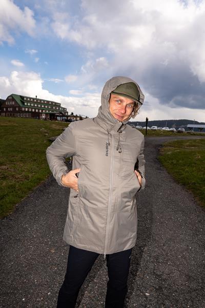 Kabát je vyrobený z odolného 2-vrstvového materiálu HUSKY TECH 15 000, ktorý je pripravený zvládnuť aj náročnejšie podmienky. Technológia zabezpečuje vodný stĺpec 15 000 mm H2O a priedušnosť 10 000 g/m2/24 hod, čo znamená, že vás ochráni pred dažďom a zároveň umožní odvod potu.