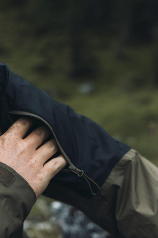 Anatomicky tvarované rukávy v oblasti lakťov zlepšujú voľnosť pohybu, zatiaľ čo nastaviteľná šírka dolného okraja i rukávov umožňuje presné prispôsobenie. Kapucňa je rovnako sťahovateľná a má spevnený šilt, ktorý chráni tvár pred dažďom a vetrom.
