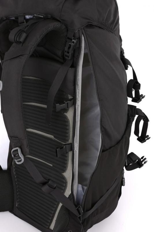 Batoh disponuje výškovo nastaviteľným a anatomicky tvarovaným chrbtovým systémom DER s duralovými výstuhami, ktorý prináša stabilitu a komfort aj pri dlhšom nosení. Priedušné polstrovanie na ramenných a bedrových popruhoch pomáha znižovať tlak a zabraňuje nadmernému poteniu. Chrbtový systém z EVA peny s tvarovou pamäťou sa prispôsobí tvaru chrbta, čo výrazne zvyšuje pohodlie počas pohybu.