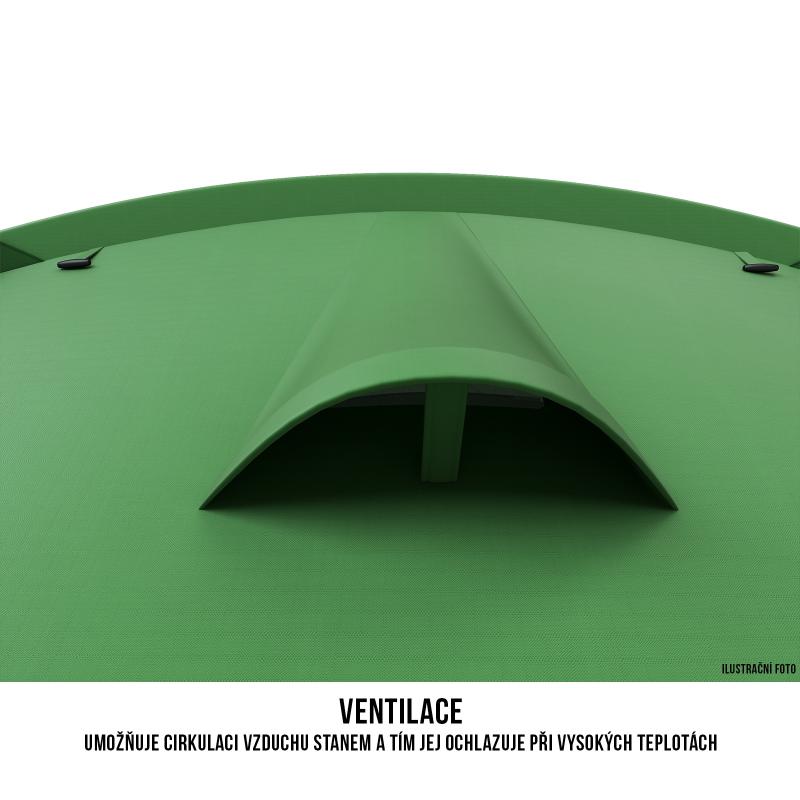 Jemný, prodyšný a přesto pevný materiál, z něhož je vnitřní síťová moskytiéra vyrobena, umožňuje, aby vzduch ve stanu lépe cirkuloval. Tím je zajištěno kvalitní odvětrávání.