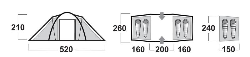 Rozměry (Š × D × V ) 260 x 520 x 210 cm