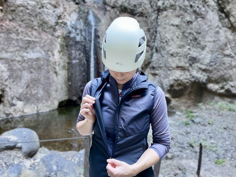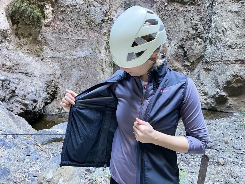 Vestu dopĺňajú vonkajšie bočné vrecká so zipsom, kam si ľahko uložíte drobnosti, ktoré chcete mať po ruke.