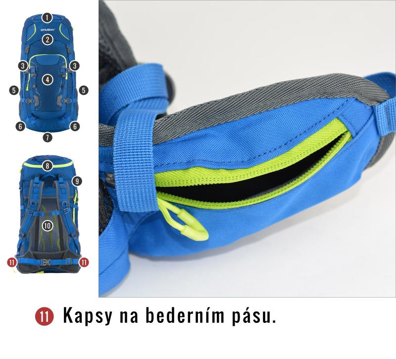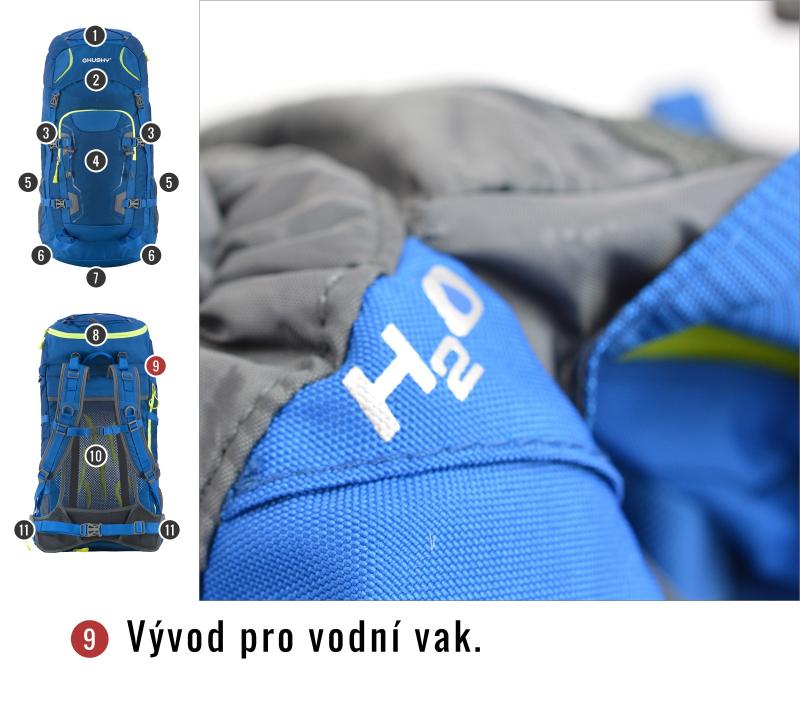 • • Úchyty na trekové palice a ďalšie vybavenie zvyšujú funkčnosť batohu
