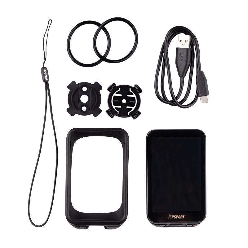 balení obsahuje: iGS800, nabíjecí kabel, silikonové pouzdro, poutko, držák, manuál