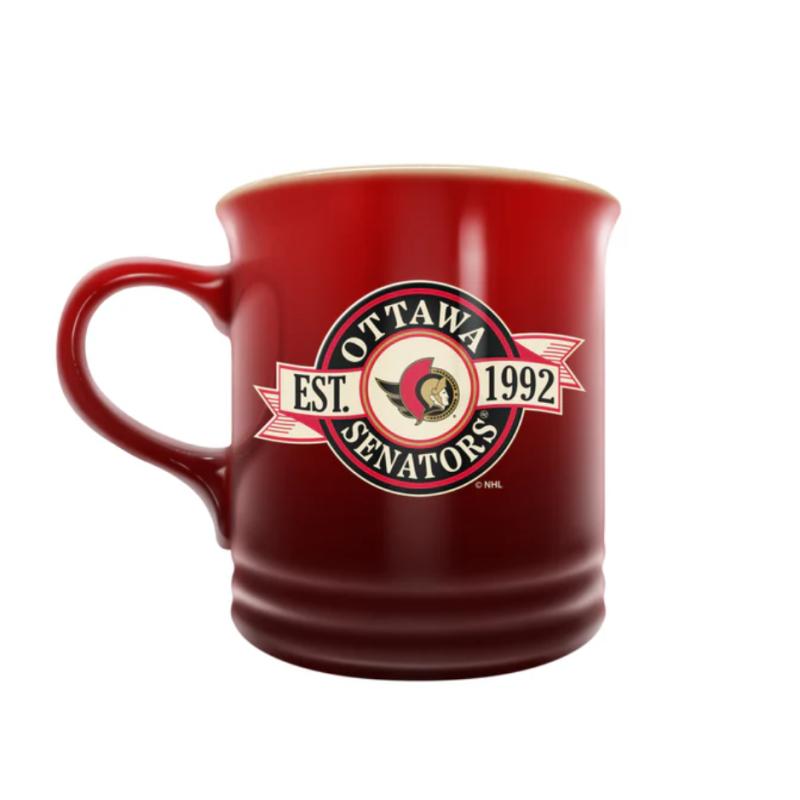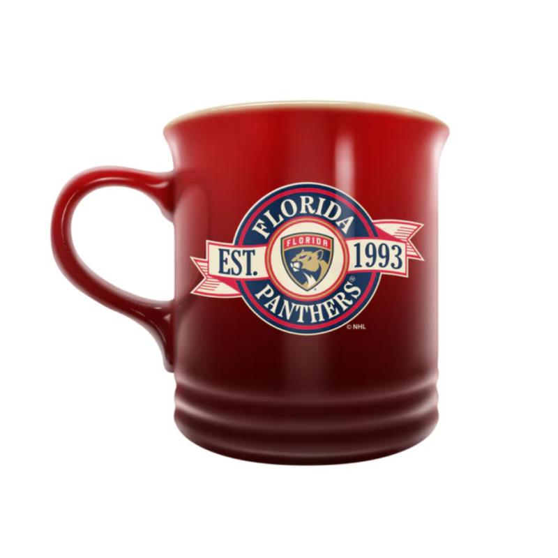 Užite si svoj obľúbený nápoj s hrnčekom navrhnutým priamo pre fanúšikov NHL, ktorý nesie motív víťazných bannerov známych z hokejových arén.