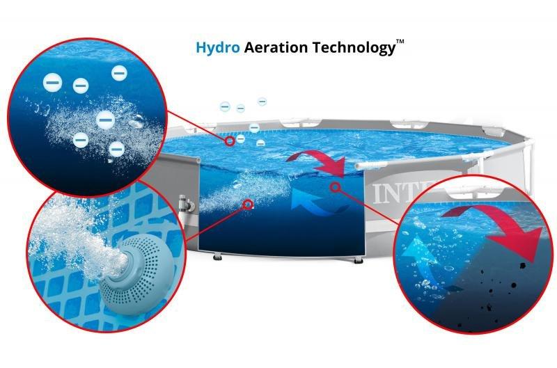 Součástí balení je kartušová filtrace s výkonem 3 785 litrů za hodinu, která efektivně udržuje vodu čistou a obsahuje veškeré potřebné přípojky pro snadné připojení. Pro pohodlný vstup a výstup z bazénu jsou přiloženy bezpečnostní schůdky. Dále balení obsahuje plachtu pod bazén, která chrání dno před poškozením, a kryt přes bazén, jenž pomáhá udržet vodu čistou a chráněnou před nečistotami.