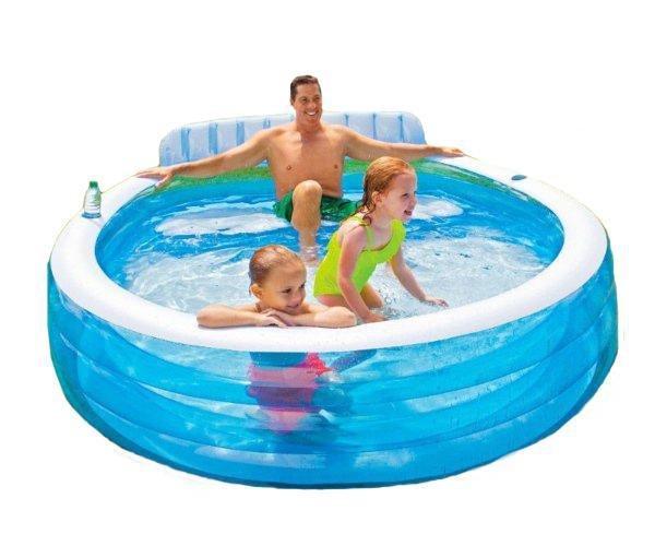 Je velký nafukovací bazén s průhledy na všech stěnách. Pohodlnost a stabilitu lze zajistit postavením bazénu na rovný povrch. Bazén má komfortní měké dno pro větší pohodlí. Snadně se vypouští vypouštěcím ventilem, který je součástí balení včetně sady pro menší opravy.Technický popis: