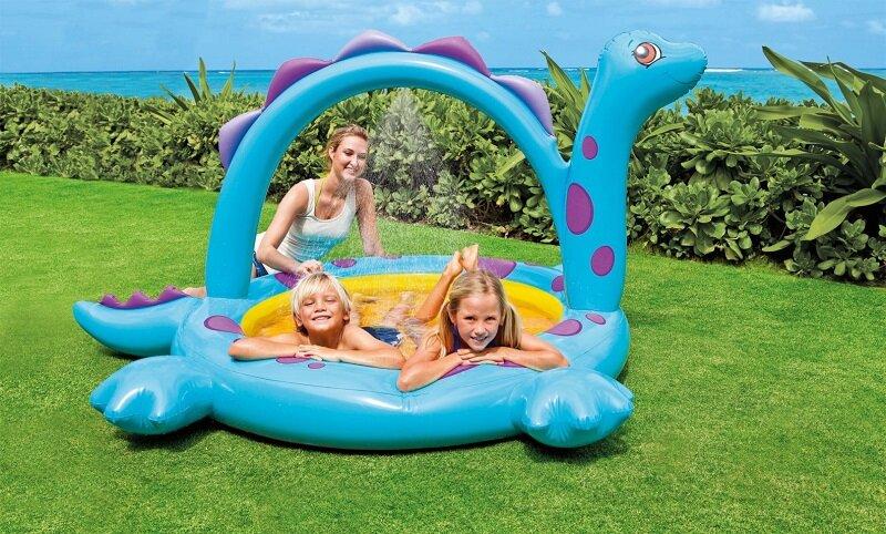 Nafukovací bazének s motivem dinosaura nabízí integrovanou spršku, bezpečnostní ventil a snadné napojení na zahradní hadici pro letní osvěžení dětí. zobrazit celý popis
