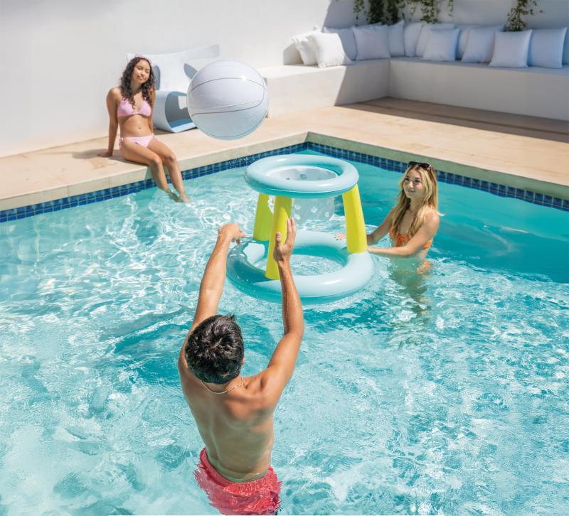 Tato nafukovací hra nabízí zábavný způsob, jak si užít vodní radovánky s celou rodinou nebo přáteli. Koš na vodní basketbal pluje po hladině bazénu a je určen pro děti i dospělé, kteří si chtějí zpestřit koupání jednoduchou a dynamickou hrou. Součástí balení je také nafukovací basketbalový míč, který je přizpůsobený k použití ve vodě a umožňuje snadné házení do koše.