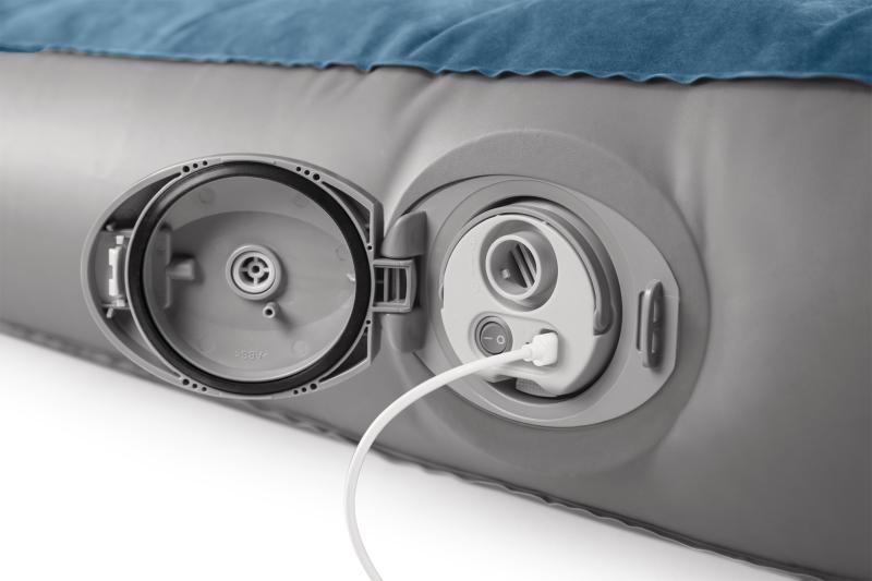 Povrch postele je sametově hebký, což přispívá k příjemnému pocitu během odpočinku. Součástí balení je odnímatelná multifunkční pumpa, která umožňuje rychlé nafouknutí postele za 2 a 3/4 minuty i její vyfouknutí. Pumpa je vybavena dvěma násadci, takže ji lze použít i k nafouknutí dalších nafukovacích produktů.