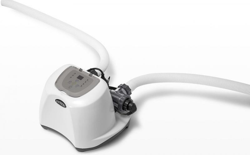Omezuje používání bazénové chemie (omezení použití chloru až cca o 70% v závislosti na zatížení bazénové vody). Solinátor je kompatibilní (pasuje) na všechny nadzemní bazény značky Intex a na všechny nadzemní bazény, které mají připojení hadic 32 a 38 mm. Jak dochází ke generování chloru? Běžná sůl (chlorid sodný) se skládá ze dvou prvků – sodíku a chlóru.