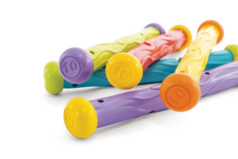 Jsou kolíky na potápění prodávající se v sadě po 5 kusech barevných kolíků s gumovou tyčkou a plastovými koncovkami. Kolíky zůstávají stát na dně bazénu a usnadňují tak jejich uchopení. Kolíky jsou vhodné pro děti od 6 let. Zlepšují potápěcí i plavecké schopnosti. zobrazit celý popis
