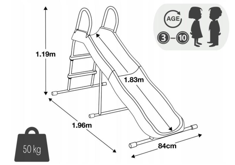 Skluzavka je určena pro děti ve věku od 3 do 10 let, čímž pokrývá široké spektrum uživatelů na zahradě nebo dětském hřišti. Díky zaoblenému designu a spolehlivým schůdkům je zajištěna maximální bezpečnost při vstupu na skluzavku i při samotném sjíždění.