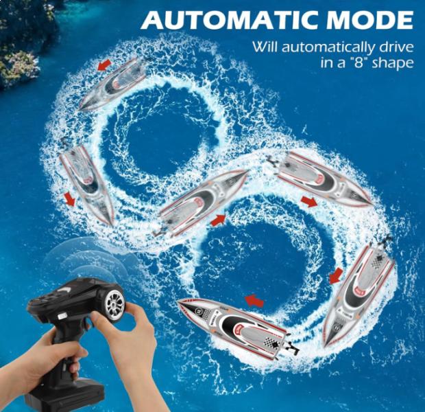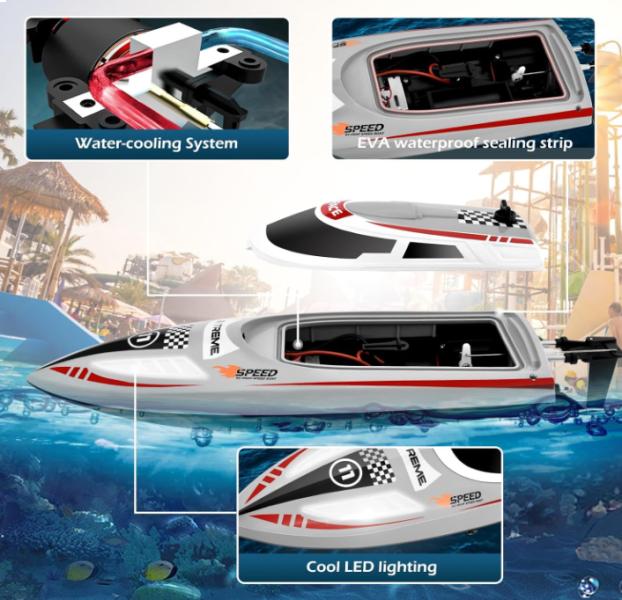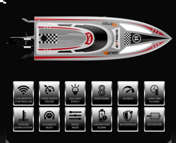 Loď na diaľkové ovládanie V003RC loď je skvelý spôsob, ako sa zabaviť v lete pri vode. Model V003 je ideálna voľba vďaka svojim funkciám. Dokáže na jedno nabitie plávať cca 30 minút vďaka akumulátoru LiPo 7,4V 1200 mAh. Veľkou výhodou je signalizácia kapacity akumulátora a dosahu, takže sa vám nestane, že by ste museli pre loď plávať. So silným motorom si užijete množstvo zábavy. Vodou chladený motor RC loď V003 je rýchla loď na diaľkové ovládanie, ktorá má vodou chladený motor. Vodou chladený predlžuje životnosť a zabraňuje prehrievaniu motora. Naprogramovaná je aj DEMO verzia, kedy loď pláva v tvare 8. Ďalšou skvelou funkciou je ,,automatic reset,, kedy sa vám loď otočí pri prevrátení späť na hladinu, takže môžete bez obáv vyraziť aj do vĺn. 3 rýchlostné režimy Rýchlosť lode sa pohybuje okolo 30 km/h, pomocou tlačidla na diaľkovom ovládaní môžete striedať 3 rýchlostné režimy alebo využiť funkciu tempomatu. Dokáže plávať vo všetkých smeroch, dokonca má aj spiatočku. Loď je vybavená LED osvetlením, ktoré je krásne viditeľné aj pri nočnej plavbe, ale tiež má signalizačnú funkciu. Diaľkové ovládanie vám zapípa, loď bliká a prejde do pomalého režimu v prípade, že je akumulátor na hrane kapacity. V prípade, že dôjdete až na hranicu dosahu, diaľkové ovládanie vám začne blikať. Dosah diaľkového ovládania je 150m, funguje na frekvencii 2,4 GHz. Do diaľkového ovládača potrebujete 4xAA batérie. Obsah balenia: RC loď V003 Diaľkové ovládanie USB nabíjačka Akumulátor Náhradná lodná skrutka Kľúčik pre výmenu lodnej skrutky Technické parametre: Dĺžka: 35 Šírka: 9.2 Výška : 9.2 Rýchlosť: 30 Výdrž: 30 Kapacita akumulátora: 1200 Napätie akumulátora: 7.4 Typ akumulátora: Li-Po Typ nabíjačky: USB Vymeniteľný akumulátor: áno Napájanie ovládača: 4xAA Vodou chladený motor: áno Farba: sivá Proporcionálny plyn: áno Proporcionálne zatáčanie: áno LED osvetlenie: áno Dosah: 150 Vodotesnosť: áno