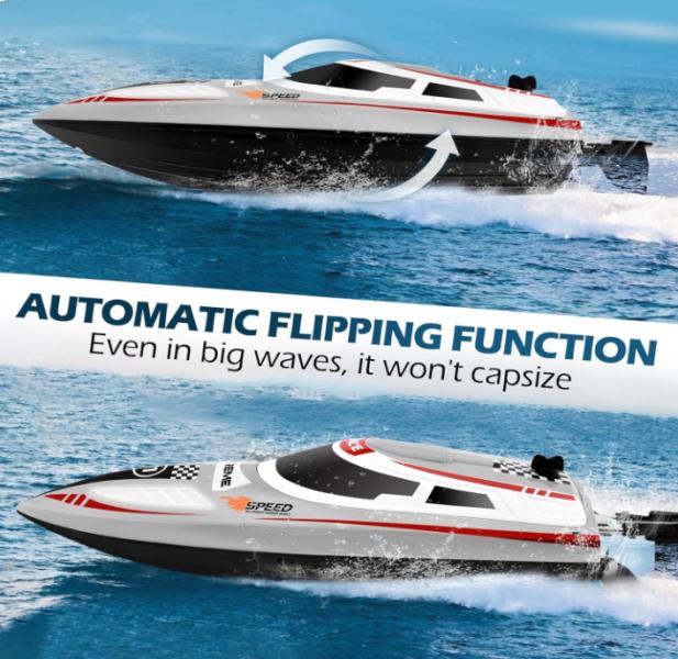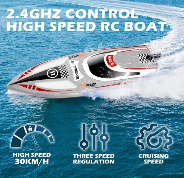 RC loď s rýchlosťou 30 km/h, vodou chladeným motorom a signalizáciou dosahov aj kapacity akumulátora.Loď na diaľkové ovládanie V003RC loď je skvelý spôsob, ako sa zabaviť v lete pri vode. Model V003 je ideálna voľba vďaka svojim funkciám. Dokáže na jedno nabitie plávať cca 30 minút vďaka akumulátoru LiPo 7,4V 1200 mAh. Veľkou výhodou je signalizácia kapacity akumulátora a dosahu, takže sa vám nestane, že by ste museli pre loď plávať. So silným motorom si užijete množstvo zábavy. Vodou chladený motor RC loď V003 je rýchla loď na diaľkové ovládanie, ktorá má vodou chladený motor. Vodou chladený predlžuje životnosť a zabraňuje prehrievaniu motora. Naprogramovaná je aj DEMO verzia, kedy loď pláva v tvare 8. Ďalšou skvelou funkciou je ,,automatic reset,, kedy sa vám loď otočí pri prevrátení späť na hladinu, takže môžete bez obáv vyraziť aj do vĺn. 3 rýchlostné režimy Rýchlosť lode sa pohybuje okolo 30 km/h, pomocou tlačidla na diaľkovom ovládaní môžete striedať 3 rýchlostné režimy alebo využiť funkciu tempomatu. Dokáže plávať vo všetkých smeroch, dokonca má aj spiatočku. Loď je vybavená LED osvetlením, ktoré je krásne viditeľné aj pri nočnej plavbe, ale tiež má signalizačnú funkciu. Diaľkové ovládanie vám zapípa, loď bliká a prejde do pomalého režimu v prípade, že je akumulátor na hrane kapacity. V prípade, že dôjdete až na hranicu dosahu, diaľkové ovládanie vám začne blikať. Dosah diaľkového ovládania je 150m, funguje na frekvencii 2,4 GHz. Do diaľkového ovládača potrebujete 4xAA batérie. Obsah balenia: RC loď V003 Diaľkové ovládanie USB nabíjačka Akumulátor Náhradná lodná skrutka Kľúčik pre výmenu lodnej skrutky Technické parametre: Dĺžka: 35 Šírka: 9.2 Výška : 9.2 Rýchlosť: 30 Výdrž: 30 Kapacita akumulátora: 1200 Napätie akumulátora: 7.4 Typ akumulátora: Li-Po Typ nabíjačky: USB Vymeniteľný akumulátor: áno Napájanie ovládača: 4xAA Vodou chladený motor: áno Farba: sivá Proporcionálny plyn: áno Proporcionálne zatáčanie: áno LED osvetlenie: áno Dosah: 150 Vodotesnosť: áno73.91
