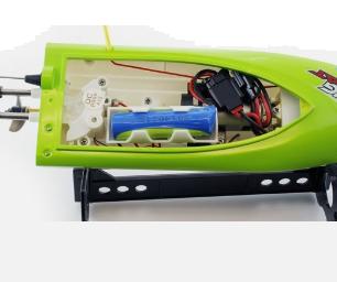 RC model loďky FT008 na diaľkové ovládanie v mierke 1:18FT008 je rýchly motorový čln na diaľkové ovládanie, ktorý sa veľmi ľahko používa a riadi. Loď je vybavená utesneným trupom s vekom, po jeho uzavretí je loď prakticky nepotopiteľná. Ovládanie rýchlosti je čiastočne proporcionálne, na pol plynu vie plávať polovičnou rýchlosťou. Loď disponuje funkciou otočenia na vode v prípade prevrátenia. Táto loď je jedna z mála, ktorú môžete pokojne hodiť do vody (ak napríklad nemáte prístup k brehu) a model bude vždy správne otočený a pripravený na plavbu.RC čln vhodný do bazénaČln je vyrobený z vysoko kvalitných materiálov a kovových dielov. Pri výrobe bol kladený veľký dôraz na detaily lode, ktorá ako celok pôsobí veľmi esteticky. Loď má veľmi funkčný tvar trupu do písmena V. Unikátna konštrukcia dáva modelu realistický vzhľad a uľahčuje ovládanie pri vysokých rýchlostiach. Vo vnútri utesneného trupu je namontovaný elektromotor triedy 180, servo riadenia, regulátor a moderná 3,7V LiPo batéria s kapacitou 700 mAh. Vďaka týmto komponentom môže loď ľahko dosiahnuť rýchlosť 14 km/h. Loďka je ovládaná 2-kanálovým pištoľovým ovládačom na frekvencii 2,4 GHz.Loď FT008 je dodávaná ako RTR, takže je po vybalení z krabice pripravená na plavbu. 9V batéria je priložená v balení. Loďku nabijete cca za 150 minút. Obsah balenia: Čln FT008 na diaľkové ovládanie Vysielačka 2,4 GHz Batéria pre loď Nabíjačka USB Stojan Náhradný skrutka Batéria pre diaľkové ovládanie Technické parametre: Dĺžka: 28 Šírka: 7 Výška : 8 Rýchlosť: 14 Výdrž: 8 Kapacita akumulátora: 700 Napätie akumulátora: 3.7 Typ akumulátora: Li-Po Farba: zelená Proporcionálny plyn: áno Dosah: 25 Návrat na miesto štartu: nie Vodotesnosť: áno