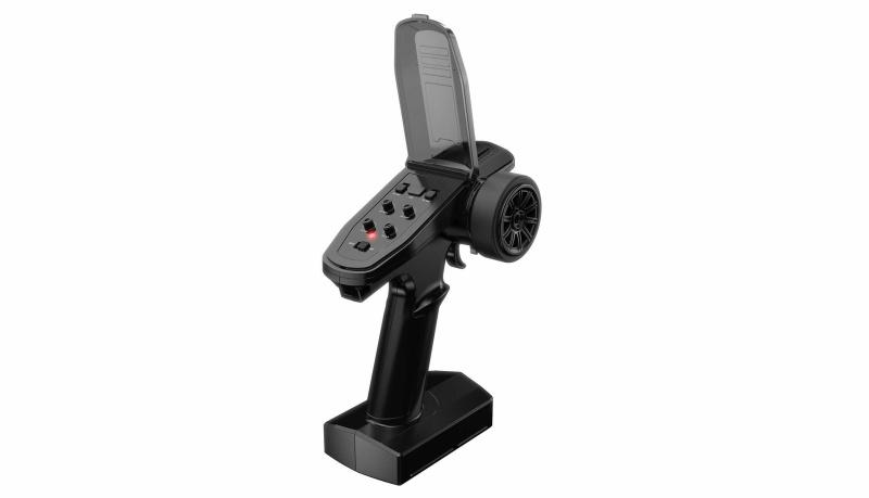 Napájení modelu zajišťuje Li-Po akumulátor s kapacitou 3000 mAh a napětím 7,4 V, který je součástí balení. Nabíjení probíhá přes USB nabíječku, což usnadňuje přípravu k jízdě. Ovladač je pistolového typu, pracuje na frekvenci 2,4 GHz a napájí se ze čtyř baterií AA, přičemž dosah ovládání je až 120 metrů. Doba jízdy na jedno nabití je přibližně 16 minut.