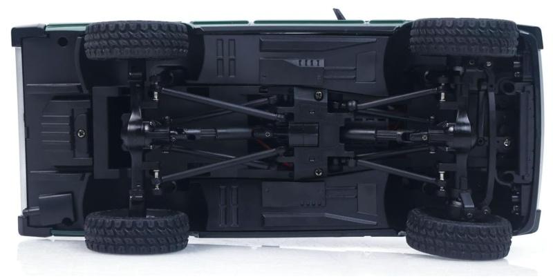 Díky pevným nápravám vpředu i vzadu a pohonu všech čtyř kol (4WD) si poradí s různými překážkami a nerovnostmi v terénu, včetně pomalého lezení na svazích až do sklonu 40 stupňů. Model je vybaven plně proporcionálním řízením a plynulou regulací rychlosti, což zajišťuje přesnou ovladatelnost a komfort při jízdě.