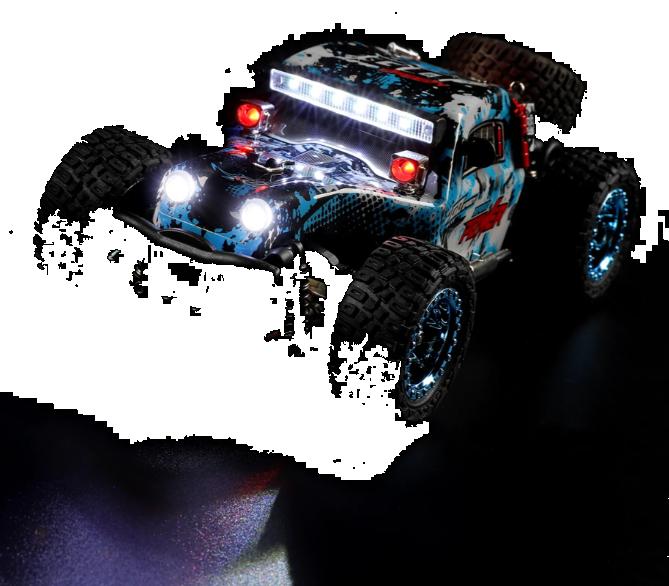Short truck je nielen odolný a rýchly, ale aj krásny. Efektná svetelná rampa nad čelným sklom a predné svetlá svietia bielo. Zatiaľ čo bočné svetlá a zadné podsvietenie karosérie svietia červeno. Pri jazde v tme je to naozajstná podívaná.