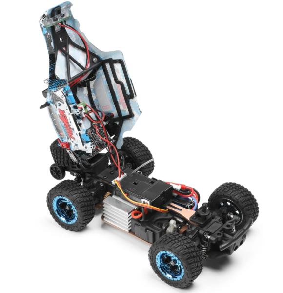 Nízko položené ťažisko, maximálna rýchlosť 30 km/h, to vyžaduje naozaj veľmi odolnú konštrukciu. Šasi alebo podvozok Short trucku je kovový, rovnako tak ako stredová výstuž. V konštrukcii nájdete množstvo kovových prvkov a do detailov spracovaný chladič, silný 130 motor, servo atď. Proti nárazom je vpredu umiestnený rám a vzadu sú ešte pomocné kolieska pre jazdu na zadných kolesách. Karoséria je vyrobená z kvalitného pevného plastu a je viditeľný každý detail.