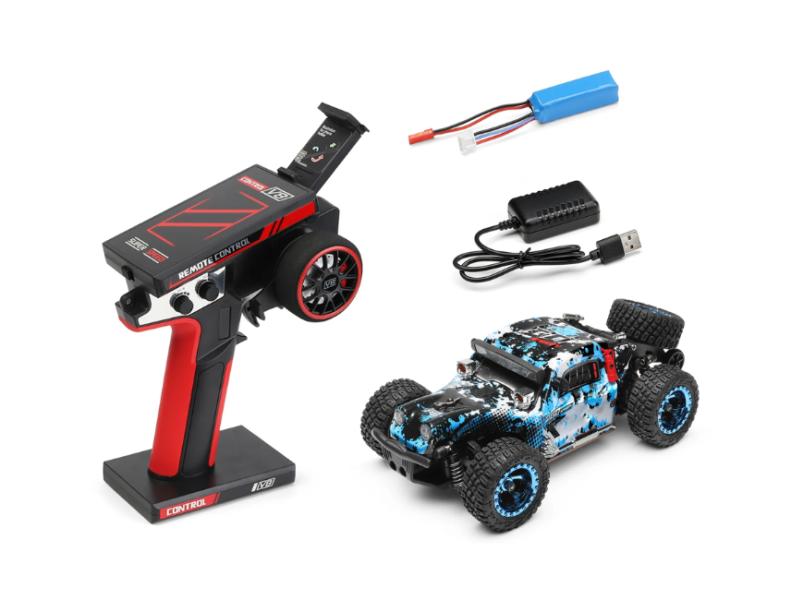 Do pištoľového ovládania sú potrebné 4 x AAA a jeho dosah je cca 100 m. Funguje na frekvencii 2,4 Ghz, takže nie je problém usporiadať preteky, RC modely na tejto frekvencii sa vám rušiť nebudú. Súčasťou je akumulátor Li-Po 7,4 V 400 mAh s JST/BEC konektorom, vďaka nemu je doba jazdy cca 16 minút. Pomocou USB nabíjačky ho opäť nabijete za cca 50 minút.