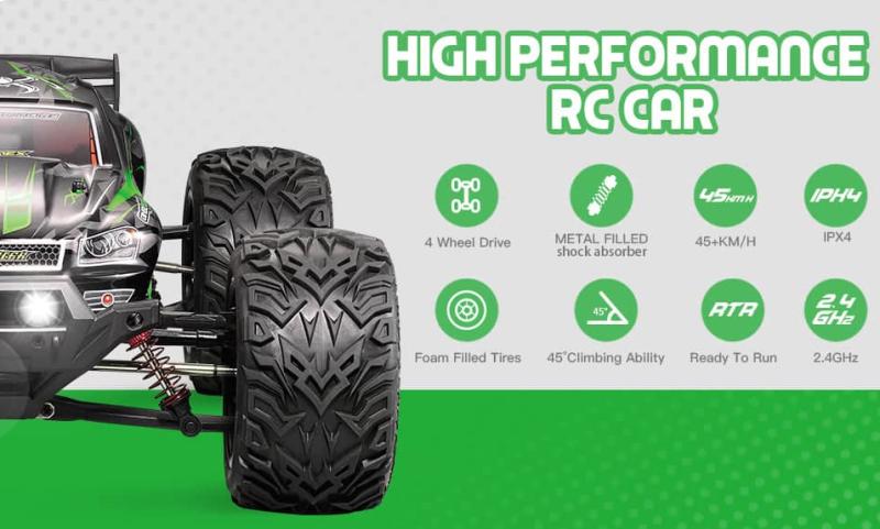 Rýchle RC auto s pohonom 4x4 a vodeodolnosťou IPX4 vhodné do náročného terénu, ovládanie s plynulou reguláciou rýchlosti a riadenia. Zobrazit celý popis
