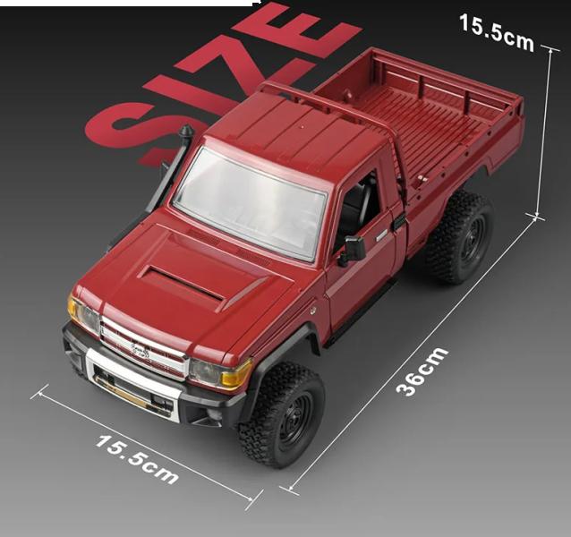 Precízne spracovaný model na diaľkové ovládanie predstavuje licencovaný pick-up Toyota Land Cruiser v mierke 1:12, ktorý je vyrobený z odolného plastu a verne kopíruje detaily vrátane interiéru kabíny.