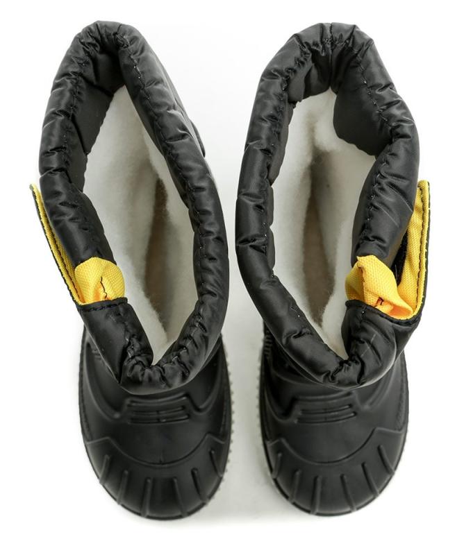 Obuv je vyrobená z kombinácie syntetického a textilného materiálu. Vnútorná časť obuvi je vybavená textilným chlpatým kožušíkom, ktorý tvorí zateplenie. Spodná časť obuvi je celá z jedného odliatku, ktorý zabezpečuje vodeodolnosť. K spodnému odliatku je prišitý vrchný nádstavec so zateplením.